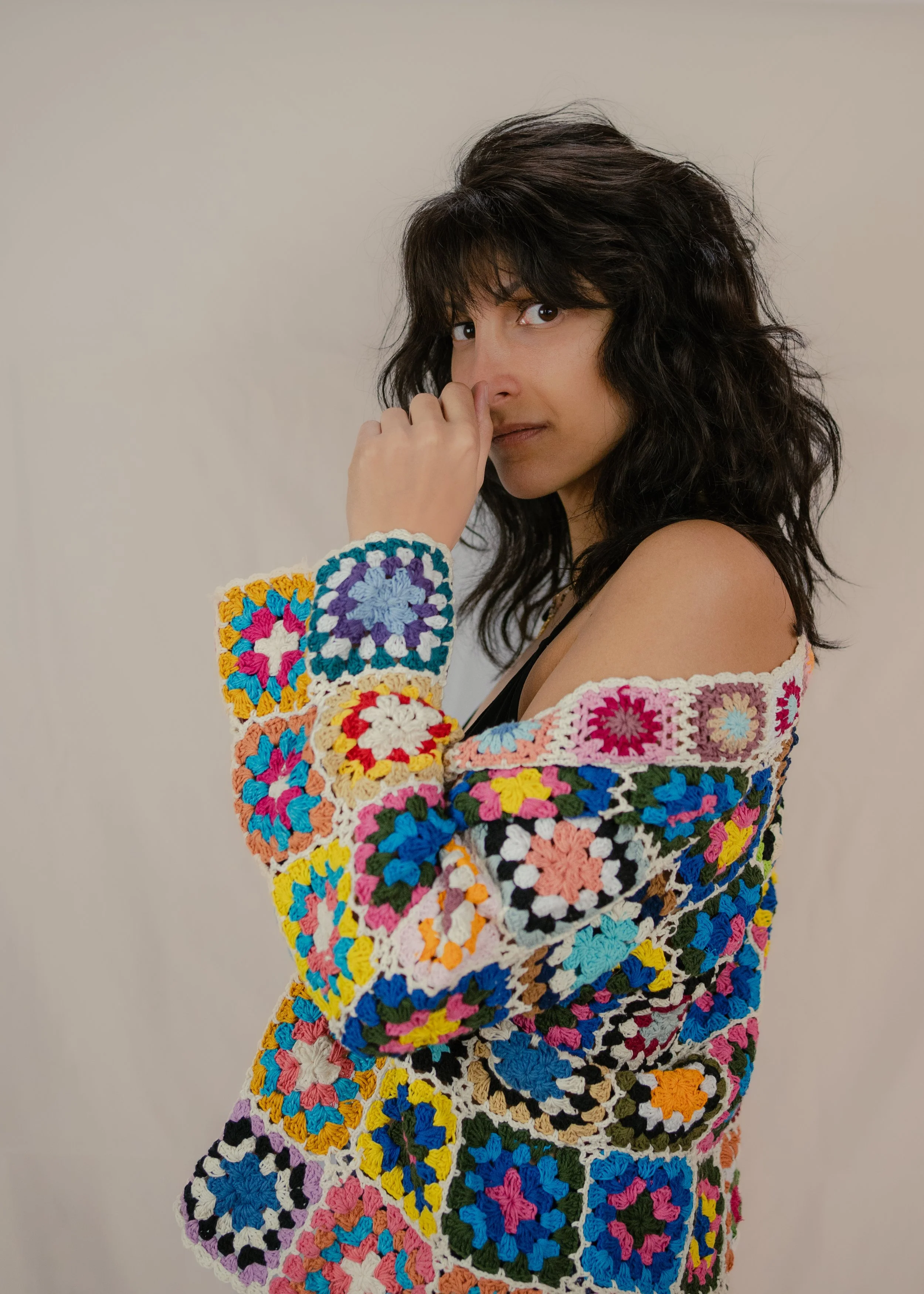 Les matières sont douces et fluides, les imprimés sont riches et flamboyants, le crochet est réalisé avec amour et patience.